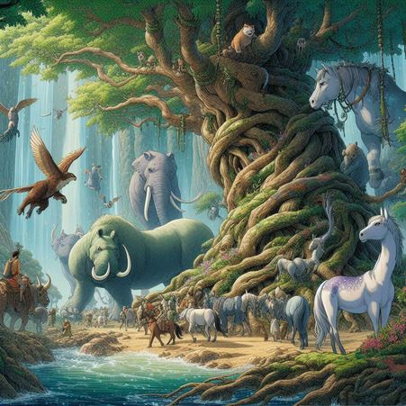 숲의 중심에 서 있는 생명의 나무가 동물들에게 도움을 요청했어요.