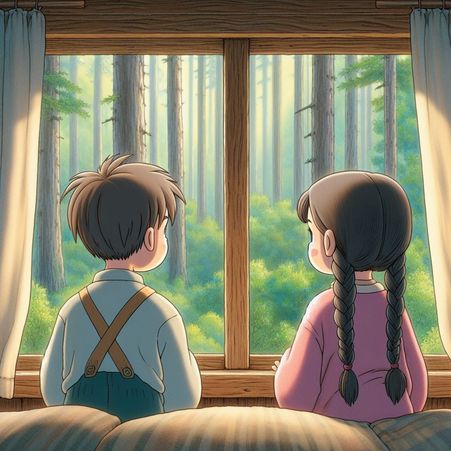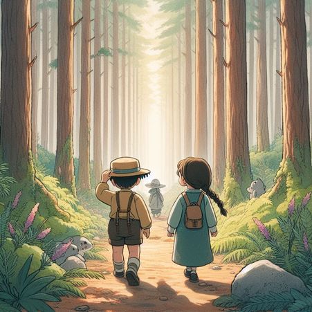 그들은 부모님의 경고를 무시하고 마법의 숲으로 향했어요.