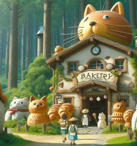 그곳에서는 멍멍이 모양의 빵과 야옹이 모양의 빵이 마치 살아있는 것처럼 움직이고 있었어요.