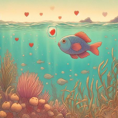 그 연못에는 사랑을 찾고 싶어하는 물고기 한 마리가 살고 있었죠.